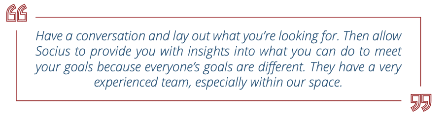 Another significant difference between Socius and the previous agency was control of their website property. Lozano commented, “Socius never tried to own our website. They always were just there to help us manage our website. For us, that was a key thing because the previous company we worked with owned it, and if you left, they kept all of the gains from the website.”
